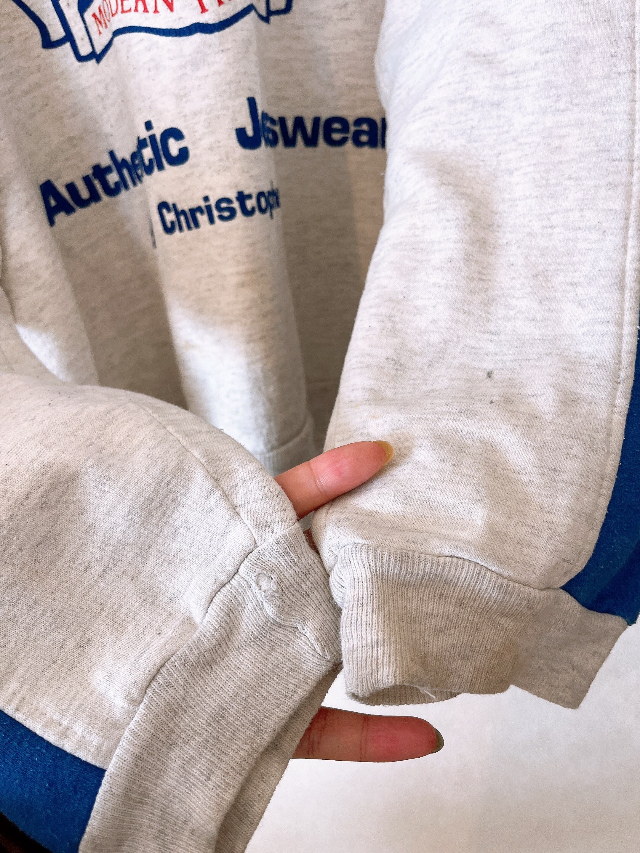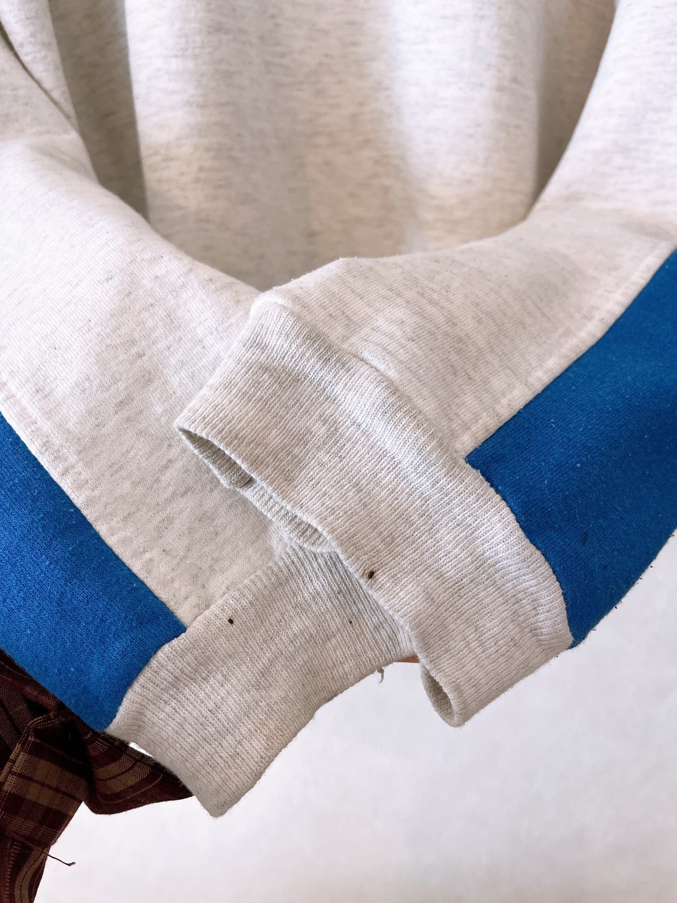 袖周りに汚れや破れあり。毛羽立ちあり。