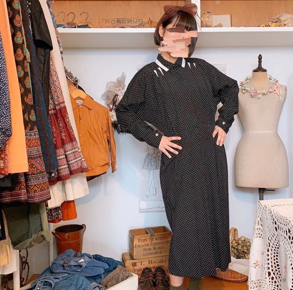 ドット シャツワンピース 古着